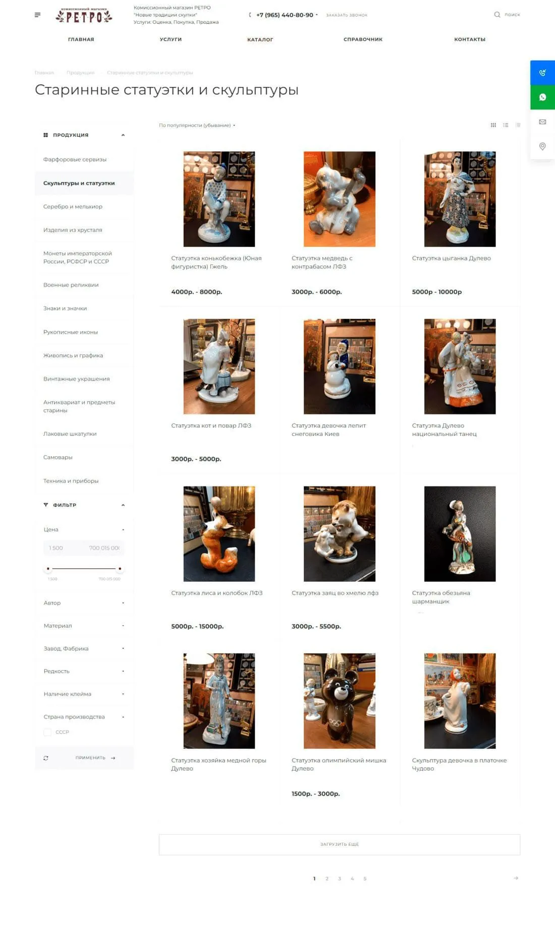 Комиссионный магазин «Ретро» занимается скупкой и продажей предметов старины. Компания располагает стационарными антикварными лавками с просторными торговыми залами. Профессиональные эксперты бесплатно выполняют оценку антиквариата различными способами, в том числе и онлайн.